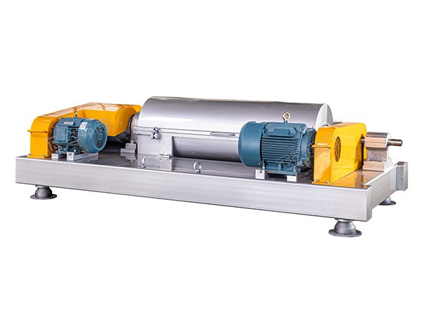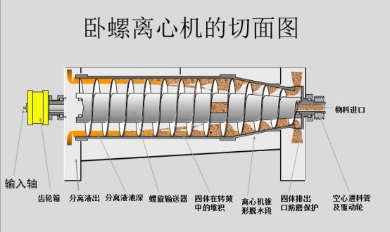当混合液体有进料口进入高速旋转的转鼓体内腔后,混合液体中比重较大的固性物,在离心力的作用下,迅速沉降到转鼓内壁,被螺旋推料器从固相出口排出转鼓体外;同时比重较小的液相则在离心力的作用下形成内层液环,通过液相溢流口排出转鼓体外。转鼓与螺旋推料器同时高速运转,由于两者之间存在一定的转速差,使得沉降在转鼓壁上固性物不间断地被螺旋推料器推送至出液口排出,整个分离过程连续进行、/span>
