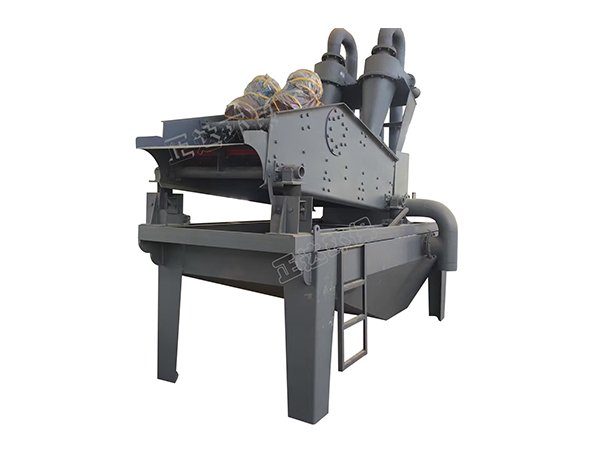 该设备由电机、耐磨泵、砂浆浓缩器、直线脱水筛筛清洗槽、反料箱等部件构成。泥浆水流入清洗槽,通过耐磨泵将泥浆水送入浓缩器,经过浓缩器把污水和沙分离,砂经喷头到脱水筛,脱水后送入输送带。污水回到反料箱,分流入清洗槽,多余部分外泄、/span>