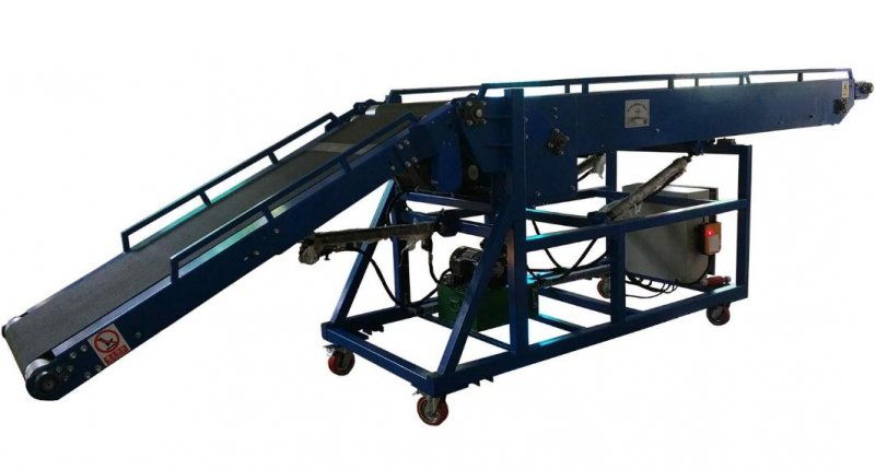 皮带机、输送机通过驱动滚筒驱动自身转动,然后通过车厢的带动使装车机整体向前水平移动,当皮带机伸到车厢内部时,在皮带机头部两侧各站立一位装车工同时装车。在装车时,装车工可以通过按固定在头部的按钮对皮带机、头部上下摆幅运动进行控制,这样可以省时省力,同时皮带上配有计数器可以控制装车的袋数,当装车完毕后,装车工可以按控制按钮将进入车厢中装车机的部分退出去、/span>