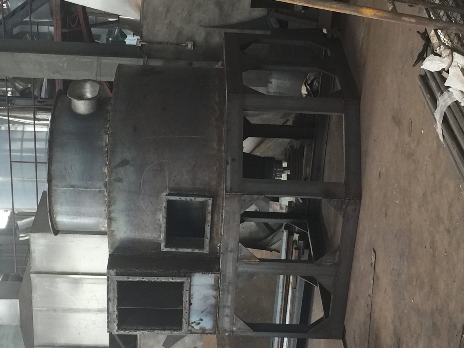 热空气由入口管以切线方向进入干燥室底部的环隙,并螺旋状上升,同时,物料由加料器定量加入塔内,并与热空气进行充分热交换,较大较湿的物料在搅拌器作用下被机械破碎,湿含量较低及颗粒度较小的物料随旋转气流一并上升,输送至分离器进行气固分离,成品收集包装,而尾气则经除尘装置处理后排空
