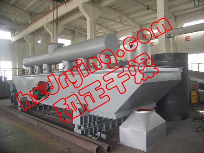 物料自进料进口进入机内,在振动力作用下,物料沿水平面流化床抛掷,向前连续运动,热风向上穿过流化床同湿物料换热后,湿空气经旋风分离器除尘后由排??排出.干燥物料由排料进口排出、br/>振动流化床干燥机适应物料