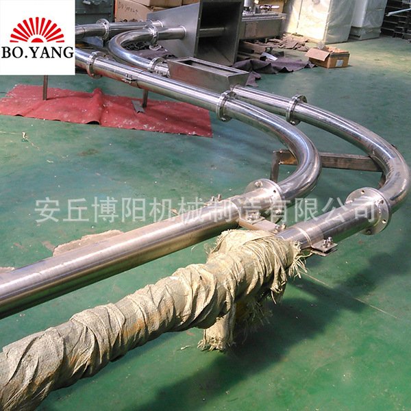 博阳机械蛋白粉管链输送机产品介绍:该设备是针对粉尘状、小颗粒状、小块状等物料进行连续输送的设备,可灵活采用水平、倾斜以及垂直角度进行输送、/span>水平输送距离可达到60米,提升高度可达?0米,输送能力可达到300 m3/h。下面请大家跟我再看一下蛋白粉管链输送机具体的介绍: