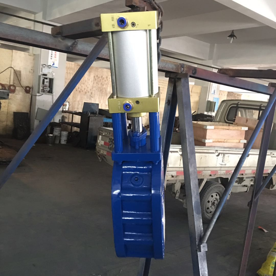 当气源从上进气口通入时,阀杆带动阀板向下运动,阀门关闭。当气源从下进气口通入时,阀杆带动阀板向上运动,阀门开启。阀板与阀座之间加载弹簧,弹簧弹力始终使阀板压向阀座保证阀门的密封性,又容许阀板在垂直上下方向移动,这有助于补偿阀门零件的热胀冷缩,并能克服任何背压变化对密封的影响与防止颗粒介质进入两密封面之间。在启闭过程中,阀板能产生自转,使得密封面之间产生研磨、抛光作用,而且由于阀体对通道偏心,在开启排卸物料时,会产生涡流,形成的物料旋涡会自行清扫阀门内腔。此阀门为双闸板单面密封,独特的下阀体斜面加镂空下阀板设计,保证阀门内腔不积灰。所有的这些特点,使得这种阀门具有超长的使用寿命,为您的系统安全运行提供了可靠的保证、/span>