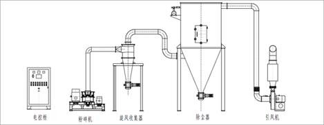 物料由加料系统均匀的送入粉碎室受到高速旋转的粉碎盘的强烈冲击,同时受到离心力的作用,与粉碎齿圈发生碰撞,受到剪切、摩擦、碰撞等多种综合力的作用,使物料粉碎,被粉碎的物料随气流运动到分级区,通过变频调节的分级轮,对粗细物料进行分离,符合细度要求的产品随气流进入旋风收集器和除尘器收集,粗物料返回分级区二次粉碎