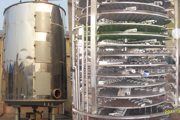 我公司的盘式干燥机具连续运行,热效率高。盘式连续干燥机以传导传热方式进行干燥,干燥过程中干燥器内只通入极少量(或不通入)空气,其尾气携带量很少,故其热效率可达65%以上。动力消耗低、噪音小。由于干燥过程中料层很薄,主轴转速低,物料传送系统所需的功率小,电耗很少,其全套干燥装置动力消耗仅是对流方式传热装置动力消耗的1/5~1/7,且噪音很小、/span>
