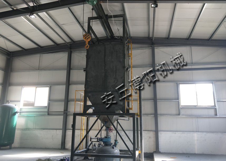 4、当吨包内的物料只剩1/3左右时,打开拍打装置的控制阀,把吨包周边的物料推至中间的下料口内,保证吨袋内不会残留、/span>