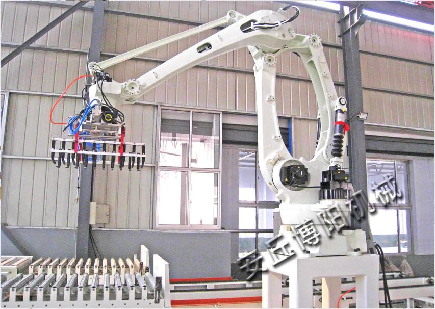 我们安丘博阳机械的码垛机器人就是一种利用机器人技术的机电一体化产品,它可将粉粒状原料生产过程中的称量、装袋、缝口、倒袋整形、输送、检测、编组、码垛等作业全部实现自动包装的机器人生产线。码垛机器人结构非常简单,可以依附现场环境来设置生产线,这样不仅可以充分利用工作环境的空间,而且提高了物料的搬运能力,大大节约了码垛过程中的作业时间,提高了码垛效率,码垛机器人设备构成零部件很少,所以很容易保养和维护、/p>
