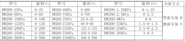 单双向量程见选型表: