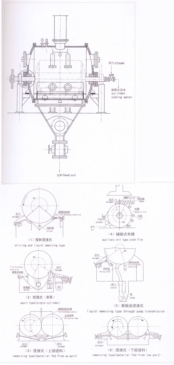 滚筒干燥机是一种内加热传导型转动干燥设备,湿物料在滚筒外获得以导热方式传递的热量,脱除水份,达到所以要求的湿含水含量,热量由筒内壁传到筒外壁,再穿过料膜,其热效率高,可连续操作,故广泛应用于液态物料或带状物料的干燥,对膏状和粘稠物料更适用、br/>