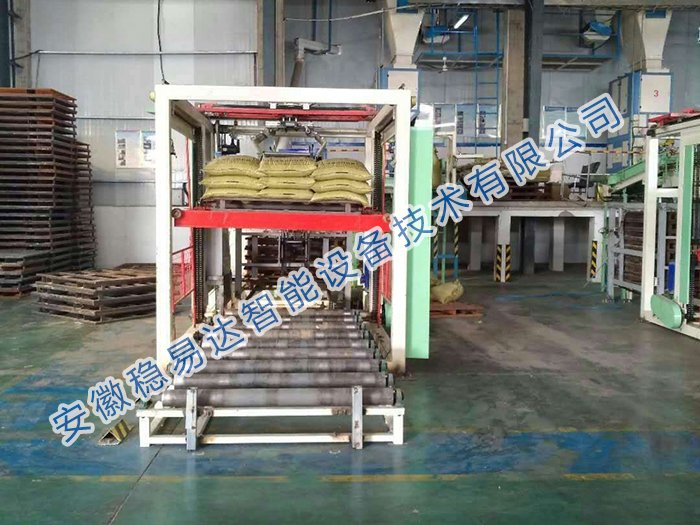 11、自动进托、自动出垛、码包整齐比机械手好:/span>