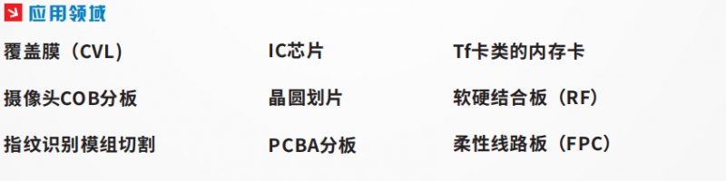 手机摄像头模组分板、指纹识别模组切割、TF卡类的内存卡、FPC柔性线路板高速激光切割,切割厚度1MM内加工没有毛刺、高精度、热影响范围小、/span>