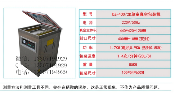 食品真空包装封口设备产品参数?nbsp;工作室尺寸:340x140x240mm,工作尺寸:300x100x240mm,热封长度:300x6mm电源?20V±10% 50HZ?斤单封口,真空时?