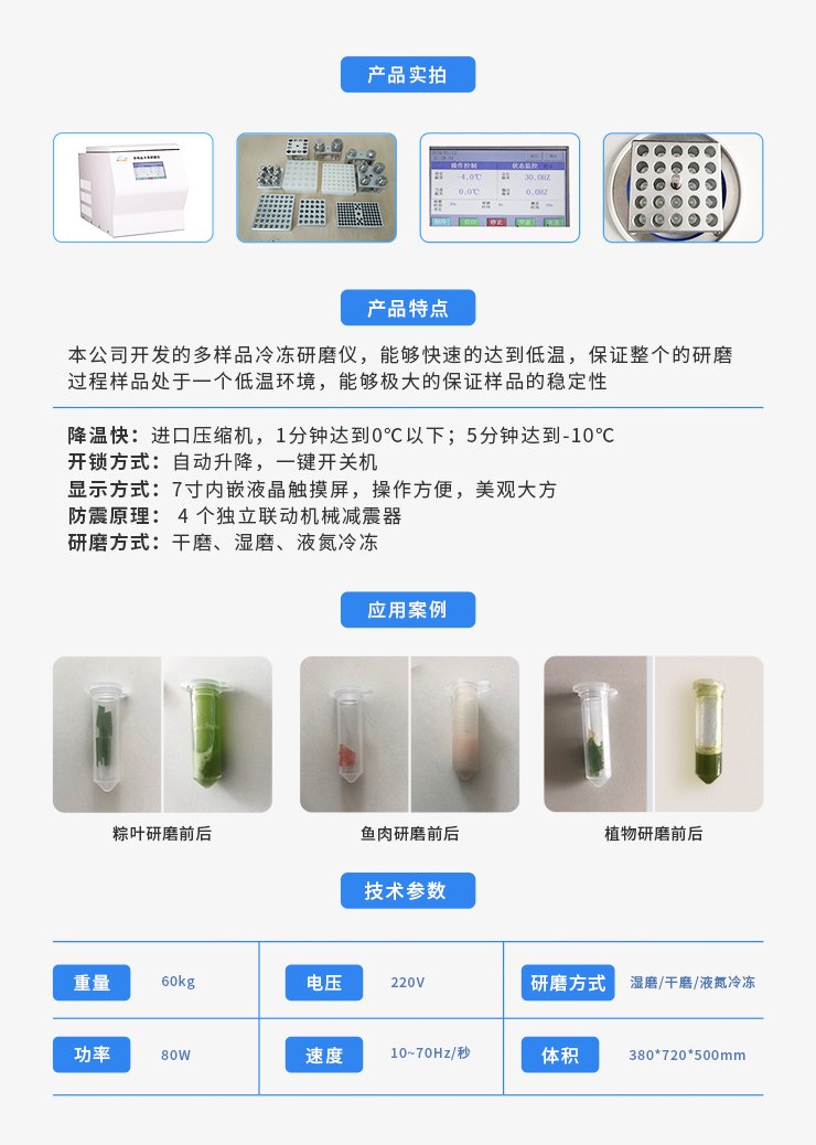 1.适用于各种植物组织包括根、茎、叶、花、果、种子等样品的研磨破碎;