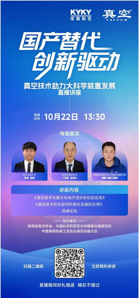 在科技自立自强战略引领下,我国真空技术与大科学装置建设同步迈向新征程。为深化技术交流、促进产学研用协同创新,10?2日,中科科仪将携手《真空》杂志,联合主办“国产替 · 创新驱动——真空技术助力大