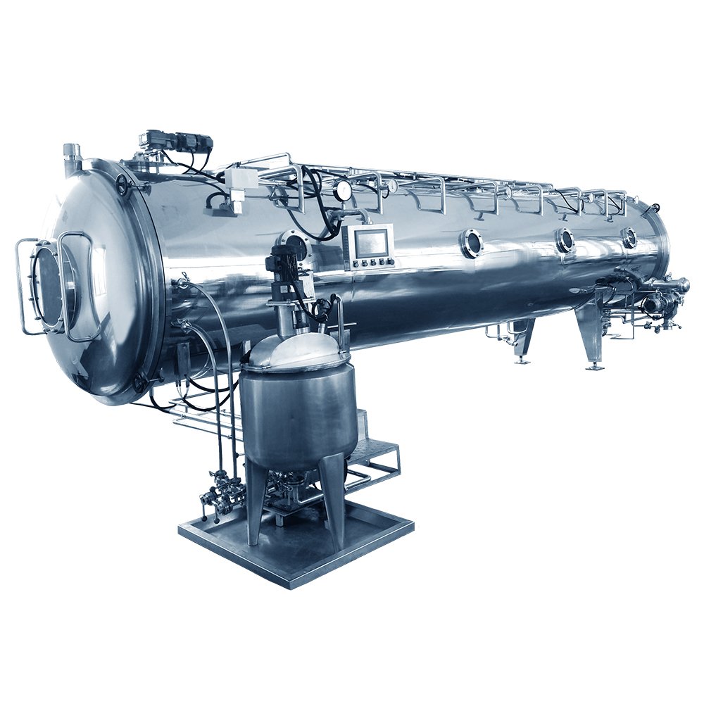 真空低温液体连续干燥机是一种连续进料、连续出料的真空干燥设备,液体原料通过进料泵输送至干燥机内,并通过布料器均匀的分布在传送带上,通过高真空从而降低物料沸点温度,液体原料水分直接升华为气体,传送带在加热板上匀速运转,加热板内热源可采用蒸汽、热水或电加热等方式,通过传送带的运转,从前端的蒸发、干燥至后端的冷却出料,温度段由高至低,具体根据物料特性可调,出料端配有特定的真空粉碎装置以达到不同粒度的成品,干燥后的粉料可自动包装或后续工艺、/span>