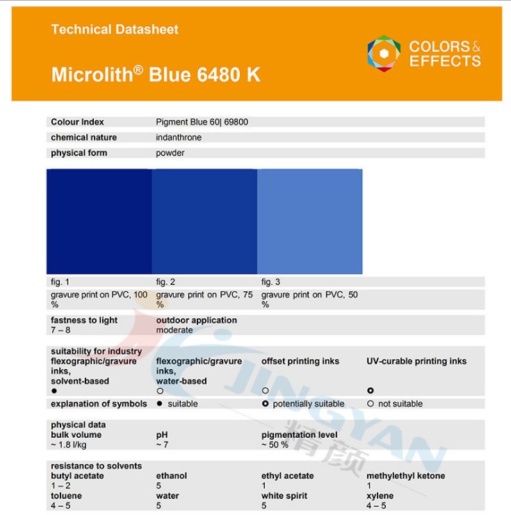 产品名称:巴斯夫BASF Microlith Blue 6480K纳米有机颜料