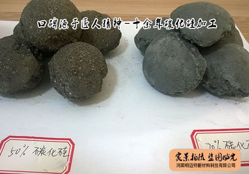 用碳化硅球团代替硅铁脱氧的技术(主要是碳化硅从价格,含量,质量,使用方法方面都有很大的市场发展空间)。不仅从含量,吸收溶解效率,净化钢液效果,价格方面,硬度方面都有不错的市场基础。另一方面由于钢厂所采购的碳化硅颗粒主要以:0-10mm规格居多,在炼钢高炉的下料当中粉尘较大且损失率较高,而且吸收率较低。而制戏span style="border: 0px; margin: 0px; padding: 0px; vertical-align: baseline; color: rgb(174, 0, 0); background-image: initial; background-attachment: initial; background-size: initial; background-origin: initial; background-clip: initial; background-position: initial; background-repeat: initial;">碳化硅球后加入新的配方配比吸收率及使用率均有明显的改善、br/>