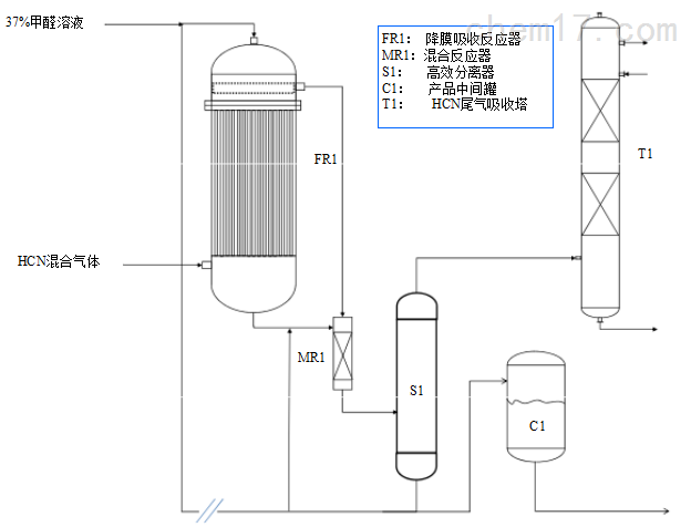 反应器:原有的间歇或半连续鼓泡塔式反应器和釜式反应器因为气体和氢氧化钠液体在反应器中停留时间长、分布宽,反应浓度和温度梯度大,造成副产物碳酸钠多,收率低。通过改变工艺流程设计,将反应模型改为全湍流状态下的活塞流模型连续化工艺,使得温度、浓度达到混合均匀度,消除温度、浓度梯度影响,反应停留时间可控,同时停留时间分布窄。从而使产品收率从以前的75-80%提高?5-99%以上.