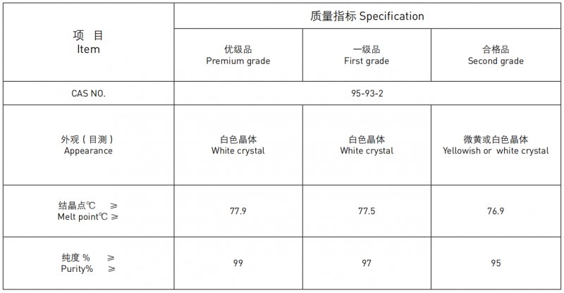 均四甲苯是以重整碳十芳烃为原料,通过精馏、富集、结晶 分离而制成,可用于生产均苯四甲酸二酐、医药中间体等;向下延伸制成聚酰亚胺树脂、增塑剂、染料、表面活性剂等、/span>