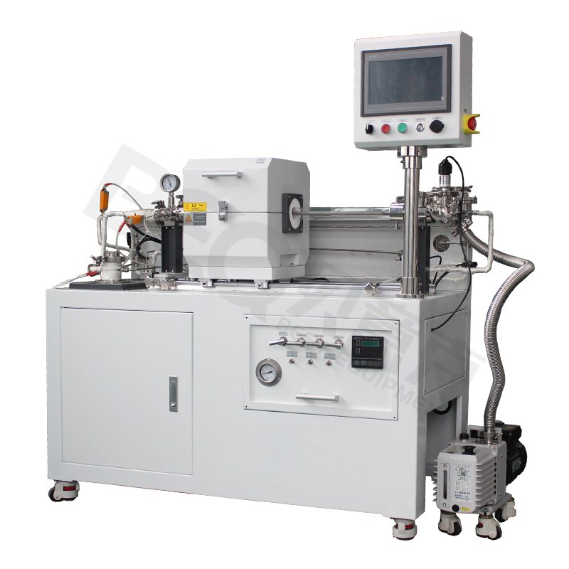 此款设备由电动滑轨式管式炉、三路供气系统、真空及过滤系统、前驱体鼓泡装置,气体预热装置、软件控制等部分组成。适用于前驱体为非气态源,如固态或液态前驱体,前驱体灌温度可?00℃,且温度独立可调,固态或液态前驱体在一定温度下蒸发后通过惰性气体带入反应区域参与的一些CVD反应、/span>