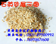一、普通石英砂9/span>SiO29099$/span> Fe2O30.060.02$/span>,耐火?/span>1750ℂ/span>,外观部分大颗粒,表面有黄皮包囊。粒度范図/span>5220目,可按用户要求粒度生产。主要用途:冶金,墨碳化硅,玻璃及玻璃制品,搪瓷,铸钢,水过滤,泡花碱,化工,喷吵等行业、/span>