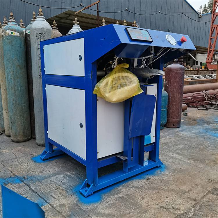 气吹式沙河包装秤操作人员套上包装袋时,触发允加开关,包装机自动夹紧袋口后开始自动给料,包装重量达到定量设定值时,自动结束加料并松开夹袋机构。操作人员取下包好的袋子,套上新的包装袋之后即可进行下一次包装、/p>