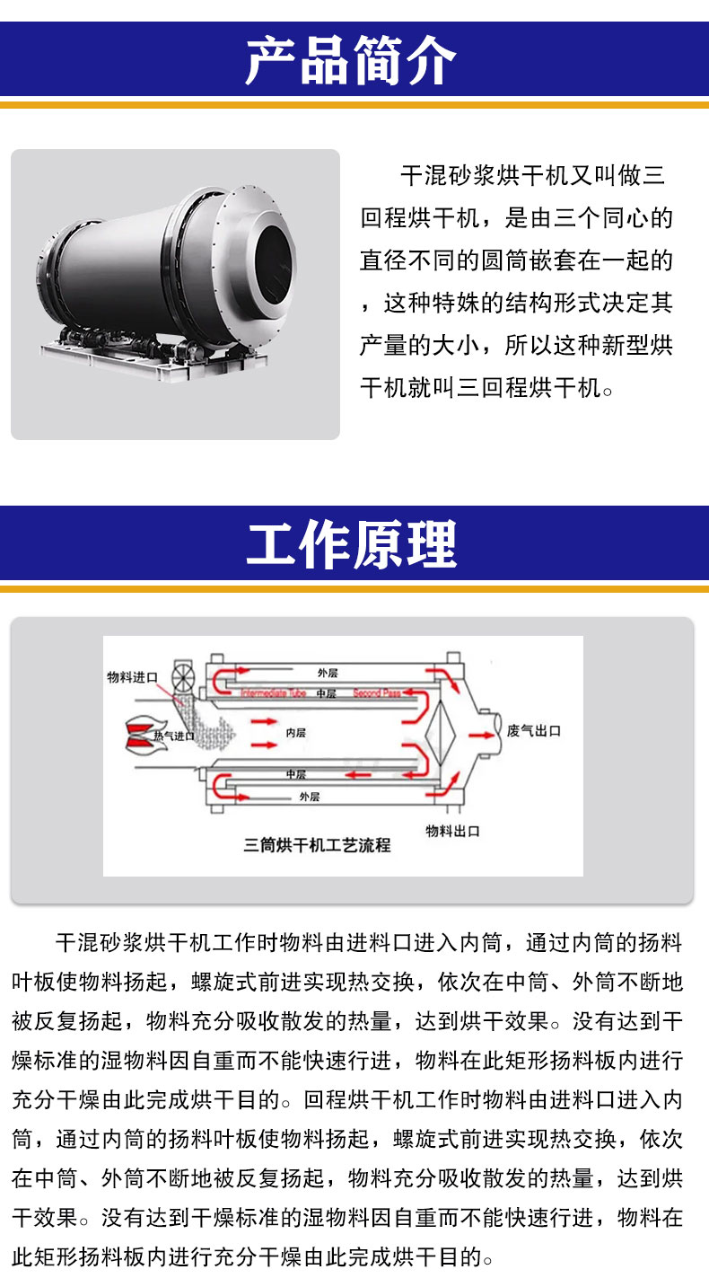 沙子三筒烘干 河沙新型三回程烘干设 石粉回转式干燥烘砂机的工作原理介绍?