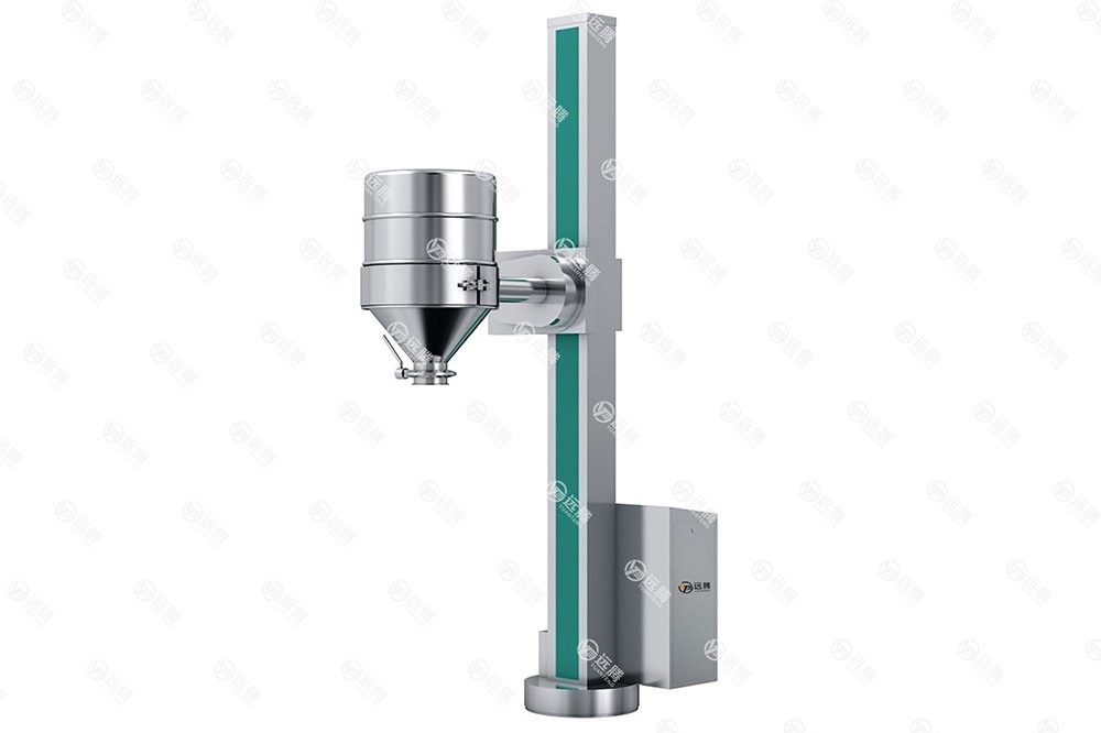 该机主要由回转底盘、立柱、提升系统、翻转系统等组成。工作时,先将料桶与提升机抱夹器扣合,然后启动提升按钮,料桶提升;操纵翻转手柄,料桶即可翻转180°,转动立柱与加料设备对接处,开启出料蝶阀,物料转移至下一工作设备、/span>