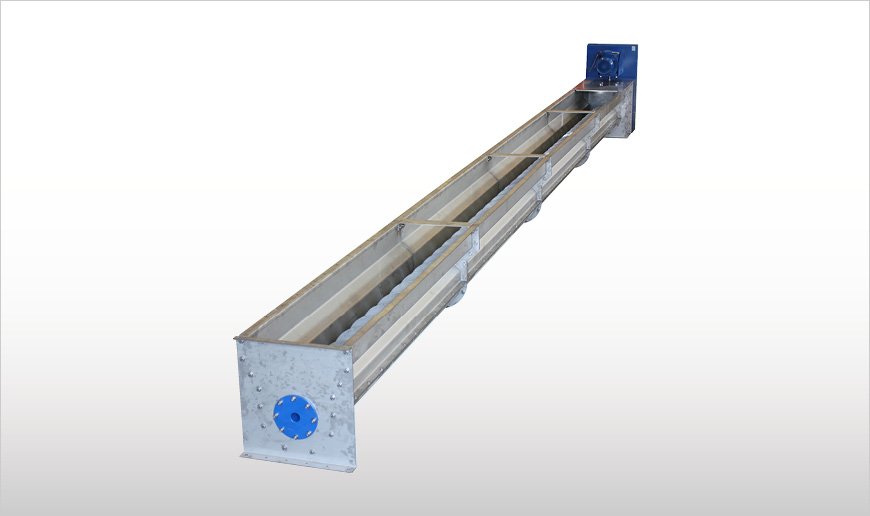 超重型CLO和CLOS槽式螺旋输送机由碳钢制成,并且经过合适的表面处理(主要经过热镀处理)。根据不同应用,其槽体的形状和结构也发生变化。输送机装配有进出料口,驱动端用于安装末端轴承组件的端板,槽体另一端用于关闭槽体的端板,法兰连接在末端轴承组件轴上的无轴超重型螺旋叶片。螺旋在可更换的槽底板上滑动。输送物料过程中螺旋和槽底板产生的剪力有助于切断纤维物料。另外,CLO/CLOS螺旋输送机还装配有满足需求的齿轮减速箱和电机、/p>