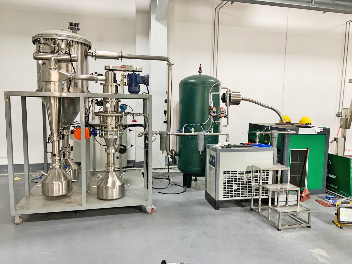 JZDBL系列惰性气体保护气流打散解聚分级设夆/span>?/span>利用拉瓦尔喷嘴熵变反应产生的高速气流使金属粉末在腔体内旋转流动,原料颗粒与颗粒之间相互碰撞、摩擦而形成揉搓效果,使颗粒之间充分分离并形成独立颗粒、/span>