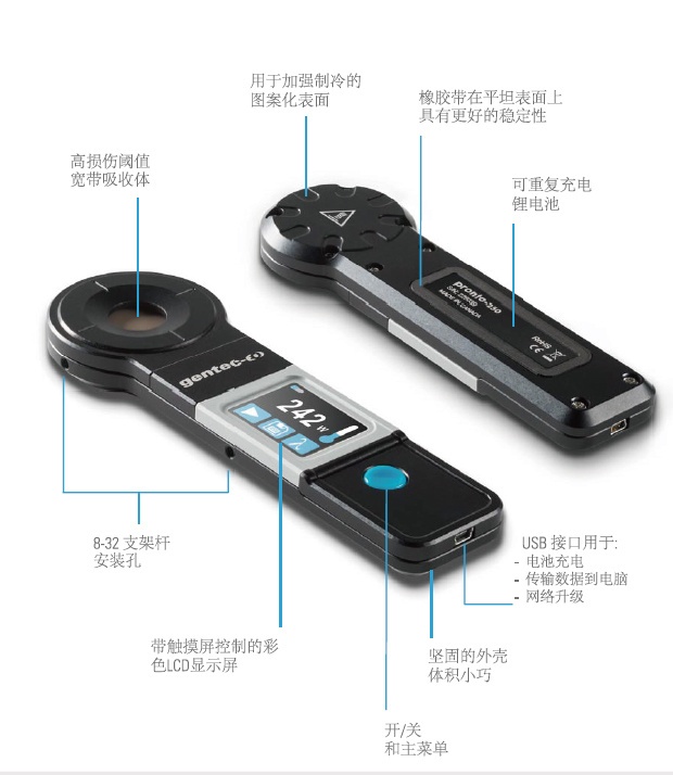 Gentec-EO 所提供的广泛高精度激光功率计适用于所有要求精密测量的专业用途,范围涵盖工业、药学,乃至科学用途、/p>