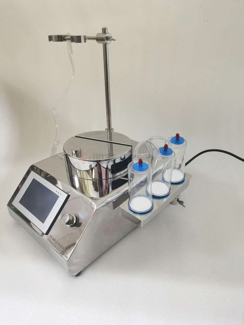 通过集菌仪定向蠕动加压,使供试品中微生物截留在滤器中的微孔滤膛/span>上,通过冲洗滤膜除去抑菌成分,然后把所需的培养基通过进样管道直接引入全封闭过滤集菌培养器中,放置在培养箱内进行无菌培养、/span>
