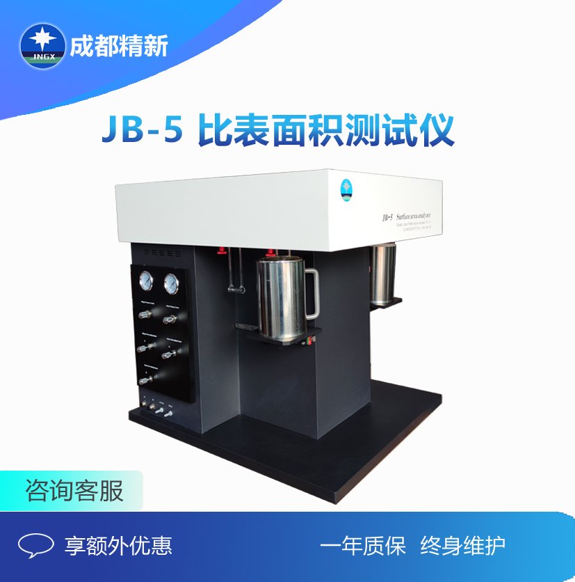JB-5型比表面积测试仪,数据稳定可靠,操作简单方便独具特色,测试功能齐全,有单点测试,对比测试,多点(BET),3种不同的方式测试,以适合于不同用户的