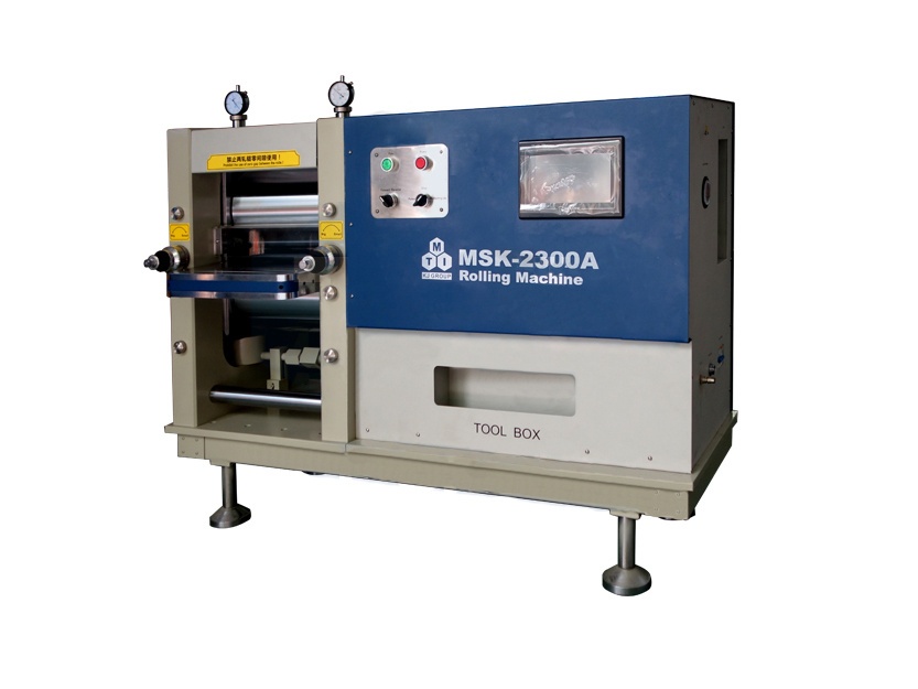 MSK-2300A液压平衡电动对辊朹/span>是一款高精度轧平片专用设备,广泛应用于电池极片的压实轧制。采用美国原裄/span>NPAK液压系统叉/span>PLC压力控制系统、收放卷系统。在锂电极片轧制中,200m可轧?/span>80m,厚度均匀?#177;2.5m。辊筒采用高强度的铬钼冷轧模具钢+/span>热处理后从里至表面全硬化,硬度达HRC60-HRC62,使其具有高强度和高耐磨性能,保证了轧制高质量产品的平稳性,以及设备的使用寿呼/span>、/span>