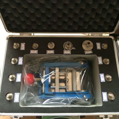 3、按产品要求选择一个合适的轴棒。插入试验器基座与轴棒孔中,并用手动螺母紧固、/p>