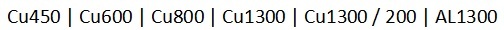 Cu450 | Cu600 | Cu800 | Cu1300 | Cu1300 / 200 |AL1300