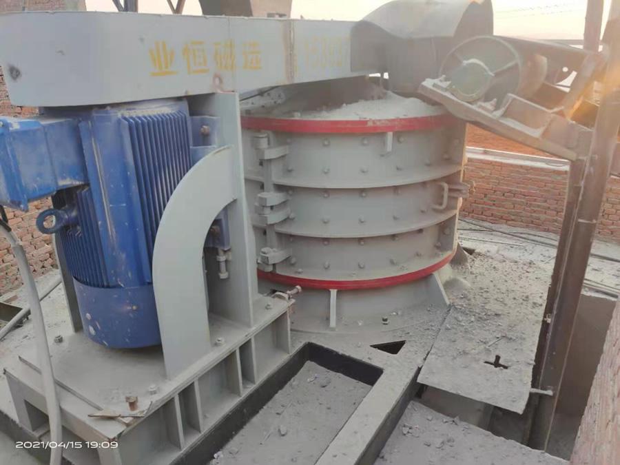 新型重型立轴破碎机为两种破碎物料方法基于一个机体内。第-级破碎体现反击破碎机的特点,把大块物料靠高速冲击而得到破碎,成为小块料。第二级粉碎又体现挤压机的特点,把小块料经冲击、挤压后而破碎,产品成为粉状和小颗粒料;被破碎的物料在机体内呈旋转运动下落,使物料得到充分的破碎;物料在第二破碎腔受到冲击、挤压作?挤压强度可达30MPa,把颗粒层压实,同时,冲击作用把颗粒击碎。这样,在冲击、挤压作用下排出的物料不是料?而是物料的松散体。所以,新型重型立轴细碎机的产品不需要再用打散设备、br/>