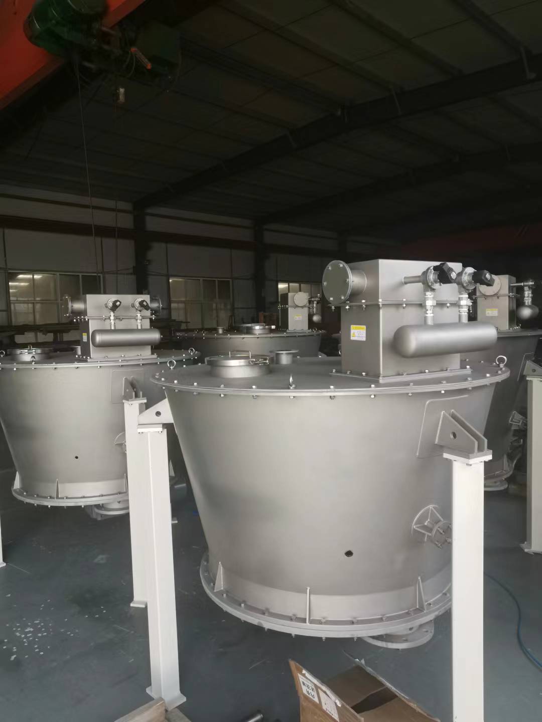 含搅拌、无火焰泄爆器、呼吸阀、气动下料阀等;整体SUS304材质,支腿为碳钢,护?04;搅拌电机粉尘、气体双防爆;系统应满足物料的存储和出料要求,不得出现积料现象、/p>