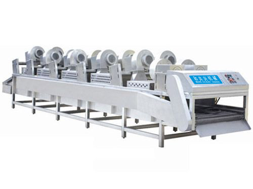 特点:Characteristic 本机引进国外先进技术,吸收意大利、台湾等同类产品基础上全新设计而成。采用六次翻转多台风机吹。该机主要应用于软包装表面水分的吹干。采用低功率、低噪音的风机,吹风口成风刀状,吹干风温为常用温,有效保护物料本身的色泽和品质,效果更佳。本机具有应用广泛、吹干效率高、操作方便等特点 The introduction of foreign advanced technology, the absorption of similar products such as Italy, Taiwan based on new design. Using six times more fan blowing tumbling. The machine is mainly applied to plastic surface water is blown dry. The low power, low noise, blower fan, wind knife mouth dry air temperature is used, the effective protection of material itself color and quality, the effect is better. The machine has has wide application, dry, and convenient operation, high efficiency, etc. 适用范围:Applicable scope 本机适用于水煮菜、调味菜、酱类、卤肉、卤蛋等采用塑料袋包装的食品,经过高温(低温)杀菌、冷却后,用本机将袋包装表面的水分吹干,以方便迅速装箱入库 The machine is suitable for boiled vegetables, seasoning, sauce, lurou, marinated egg etc packed in plastic bag food, hightemperature (low) sterilizing, cooling, using this machine will bag packing surface water is blown dry, with convenient fast loading. 技术参数:Technical parameter