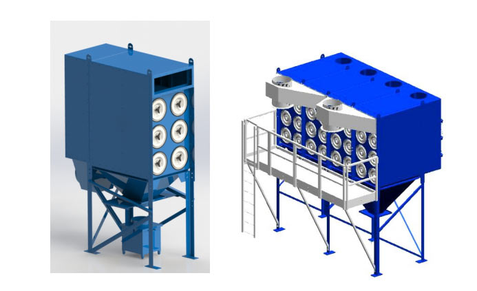 模块化设计的大型滤筒除尘器,上进风的工作原理,与粉尘跌落的方向的一致性;