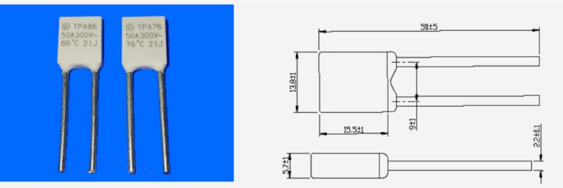 方形温度保险丝:TPA,TPB 13.8X5.7X15.5 50A300V
