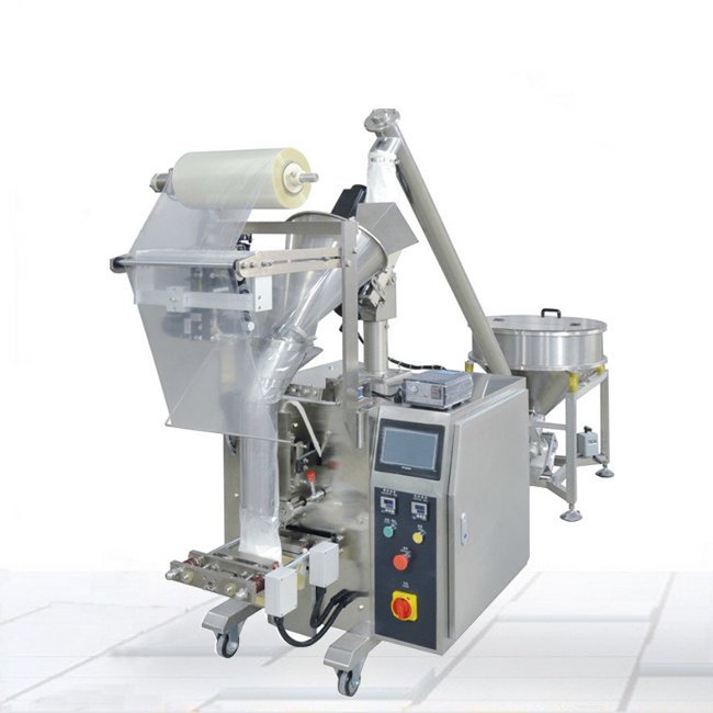 调味斘strong>粉体自动包装朹/strong>整体下料机构采用纵向调节装置,螺杆套与料斗之间选用锁紧扣方式连接,无需任何工具便可快捷的清理剩余物料。机器先进的微电脑双控制系统对计量及袋长进行准确调节。所有功能均采用按键操作,液晶显示,自动完成制袋、跟标、计量、充填、封合、热压批号、切断、计数、易撕切口等全部工作、/span>