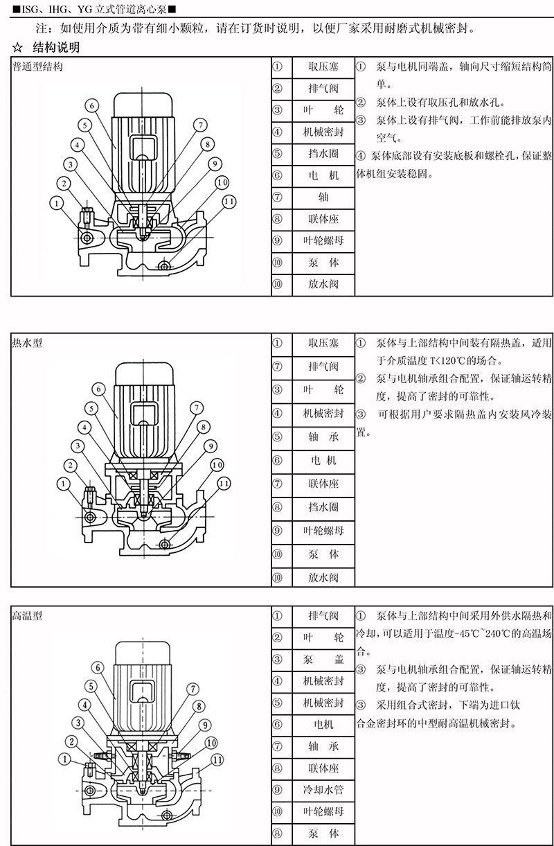 注:如使用介质为带有细小颗粒,请在订货时说明,以便厂家采用耐磨式机械密封、/span>