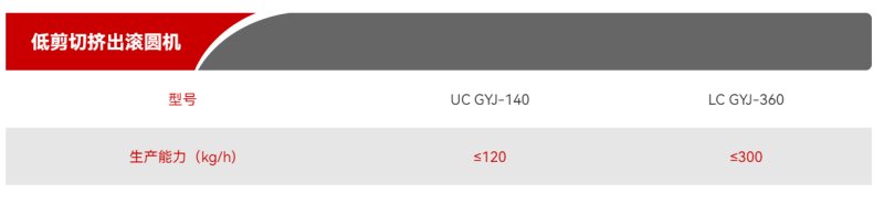 低剪切挤出滚圆机 型号 UC GYJ-140 LC GYJ-360 生产能力(kg/h) ?20 ?00