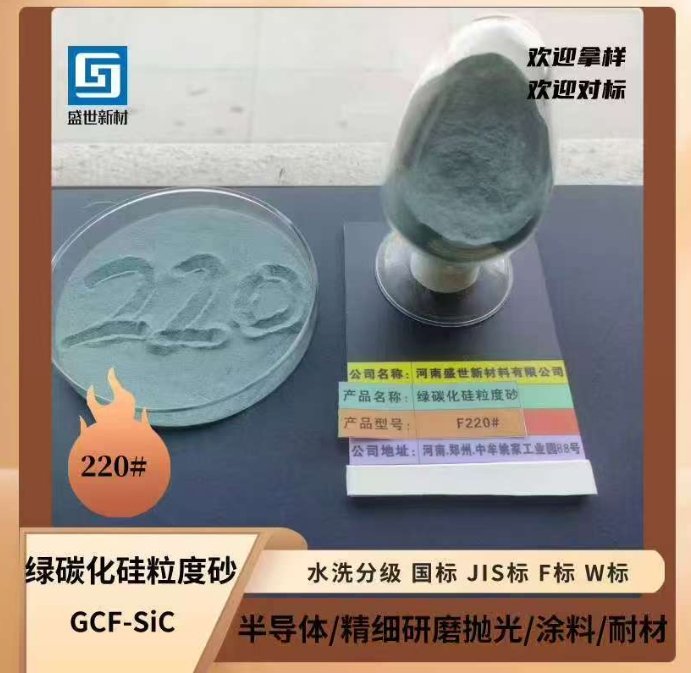 绿碳化硅粒度砂GCF-SiC 220# 绿碳化硅粒度砂的含量比一级黑碳化硅粒度砂的要高一些。不同规格的碳化硅砂应用在不同的抛光,研磨,磨具领域中、span style="text-wrap: wrap;">河南盛世新材料有限公司成立于2015??日,位于河南省郑州市中牟县姚家镇工业园区88号。产品规格齐全,适用于研磨、抛光、切割等行业、/span>