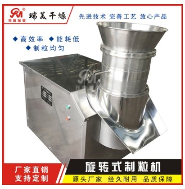 将混合均匀的软材,在辗刀的挤压下,使物料强制通过筛网并受到刮刀的切割进而得到长度均匀的柱形颗粒、/p>