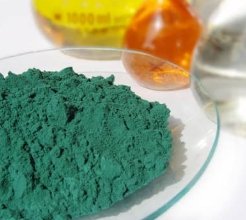 为浅绿至深绿色细小六方结晶,有金属光泽,遮盖力强,耐高温,耐日晒,不溶于水,难溶于酸,在大气中比较稳定、/span>