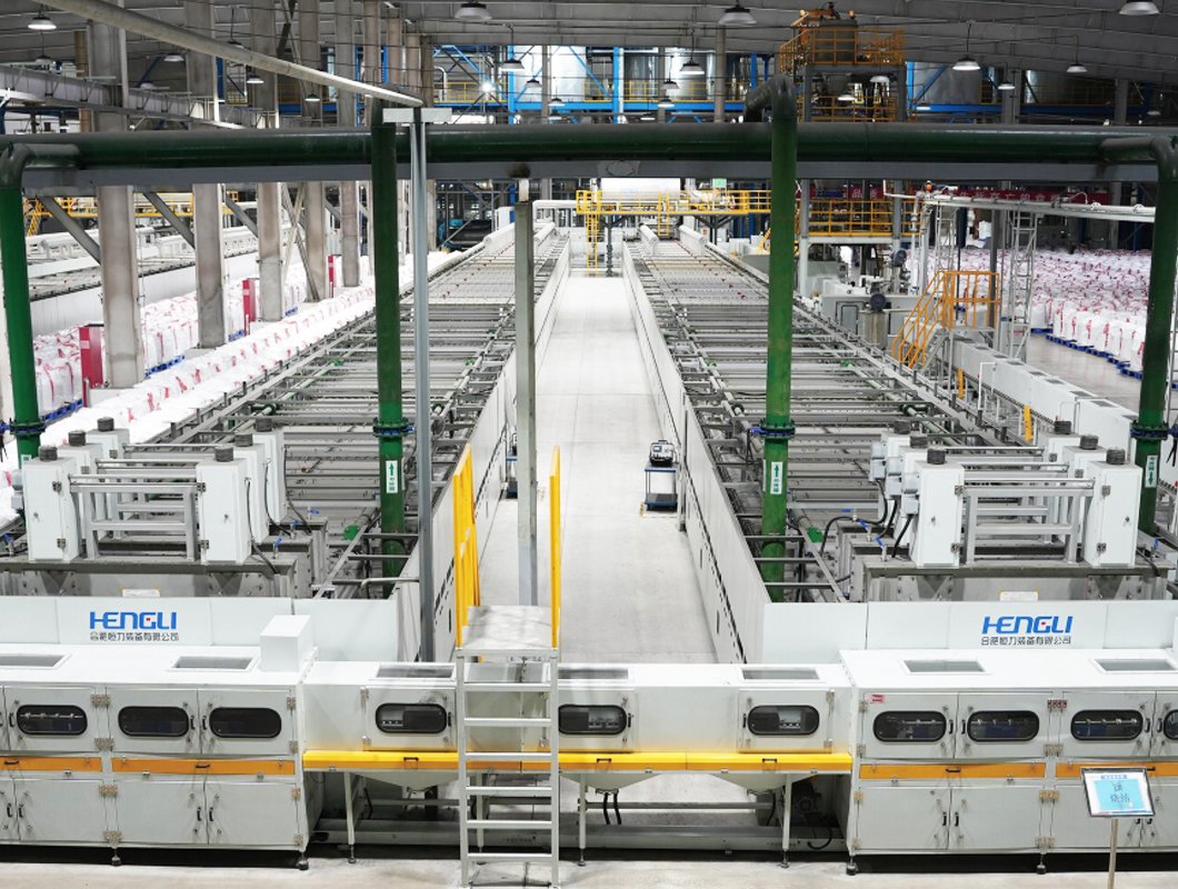 2、大产能:六列三层百米,单台年产能可?万吨左右(工艺不同会有差别):/p>