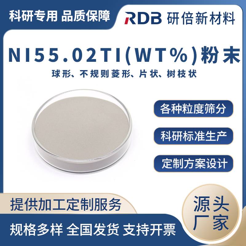 | RDB-FM-Ni55.02Ti(wt%) | 可定刵/span> | 0-25um 15-53um 45-105um 45-150um | 黑色粉末 |