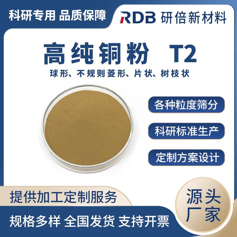 此外也适用于表面工程与合金添加领域:可用于通过热喷涂制备导电防腐涂层,以及在黄铜、青铜等铜合金熔炼中添加铜元素,提升合金的纯度与性能,纯铜粉 T2 的高纯度与稳定性能满足这些领域的严苛要求、/span>